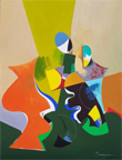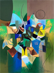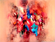| "Does he think, and does he contemplate before he begins to paint? Who knows and who cares? He does it brilliantly. Does he expect to see on his canvases what he previously imagined in his mind? Who knows? But, one thing is sure, this artist thinks with feelings and feels with thoughts and artistic meta-logic." Maximillien de La Croix de Lafayette